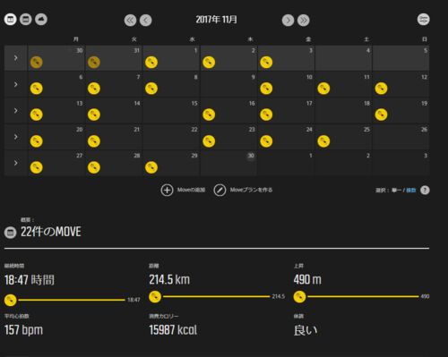 10月のランニング結果です。9月にスント スパルタントレーナーを購入してからランタスティックの利用をやめたため、スントのサイト「movescount.com」のページコピーしています。ちょっと見にくいですね。