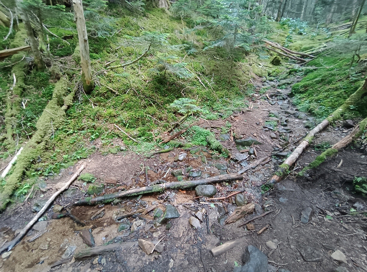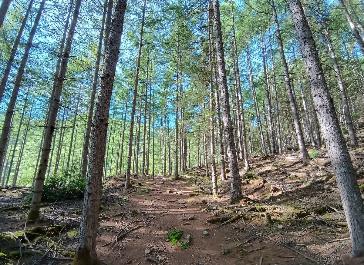 なかなか標高が下がらない。そしてこの道誰も歩いてないんですけど。携帯の電波も入らないし、こんな所で遭難したら助けてもらえないと思います。