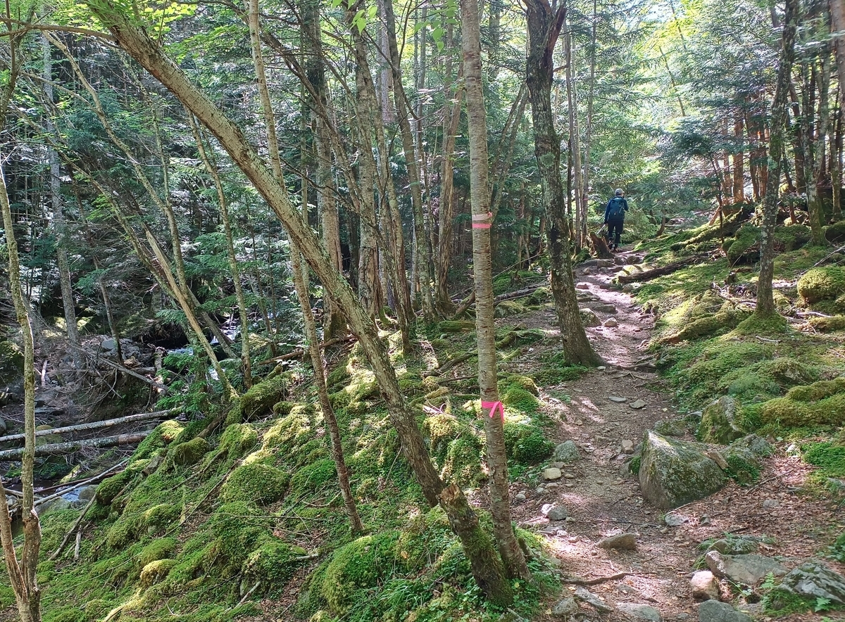 ずっと渓流沿いを歩きます。道はよく整備されていて斜度もゆるやかでとても歩きやすいです。