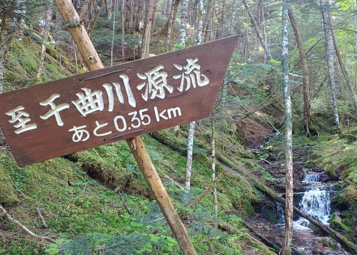 来ました、千曲川源流地点。千曲川が新潟県に入ると信濃川になるそうな。