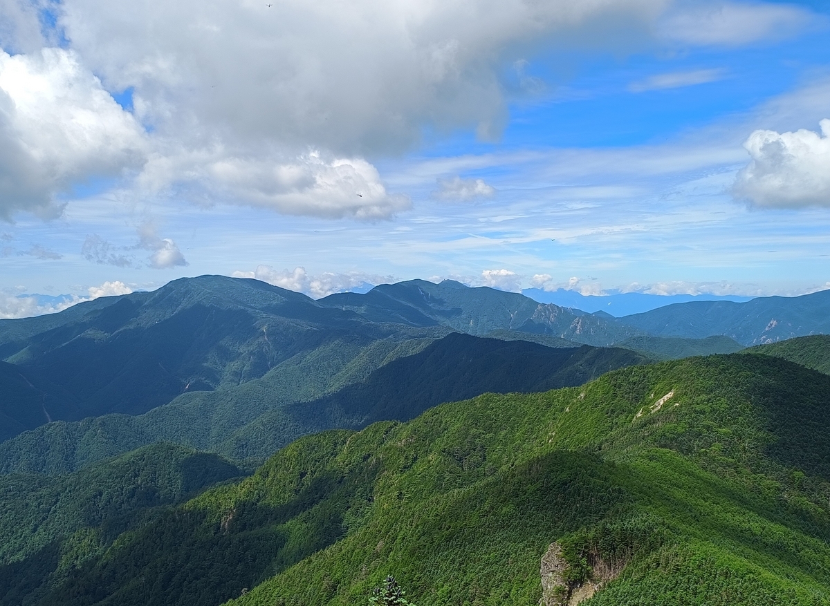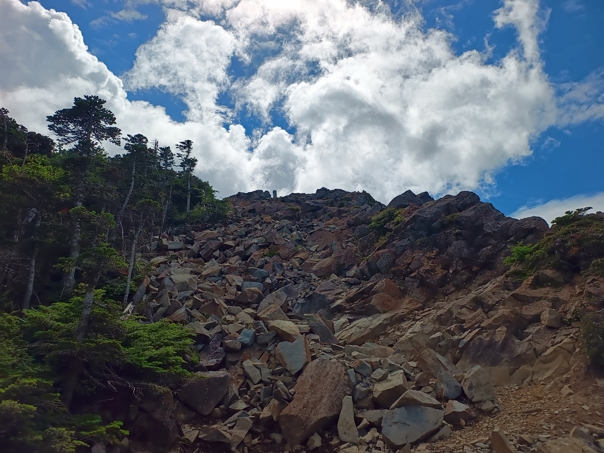 ここは景色が開けましたけど、もう雲がたくさん出てきて遠くで雷もゴロゴロ鳴ってました。