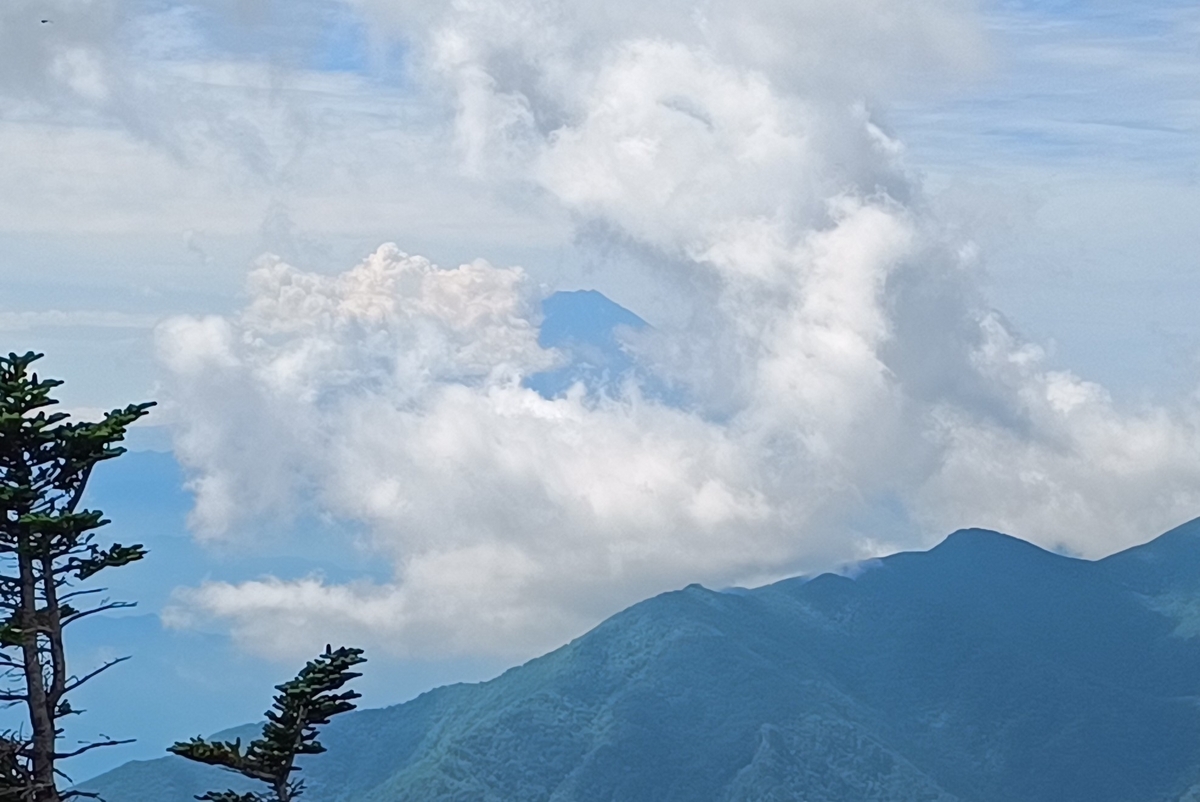 10時くらいに登頂しましたが、富士山もギリギリ見えました。この後すぐ雲に隠れて見えなくなってしまった。