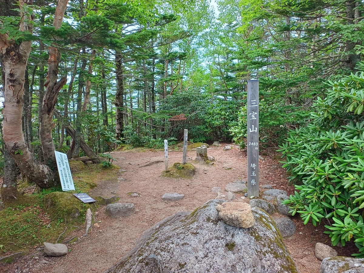 少し下って登り返して、お隣の山三宝山着。こちらは埼玉県最高峰の山らしいですが、景色も無いしとにかく地味な山でした。
