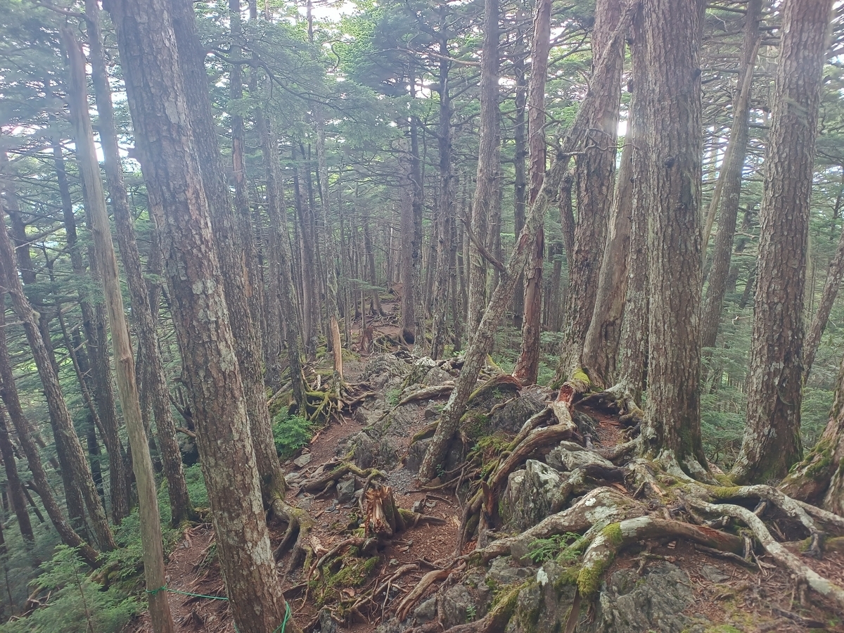 甲武信ヶ岳の標高は2470mで、登山口が1462mなんで1000mくらいは登っているんですが、それほど登った感じがしなくて、すごく楽に登れた感じです。直近に燕岳TTやったからかもですが。