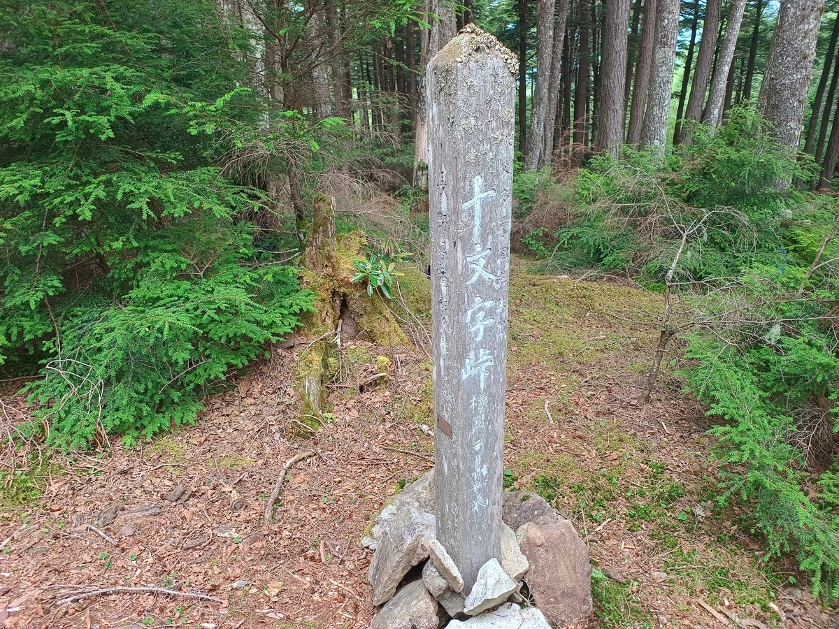 12時過ぎに、やっと十文字峠着。ここからは一気に降ります。