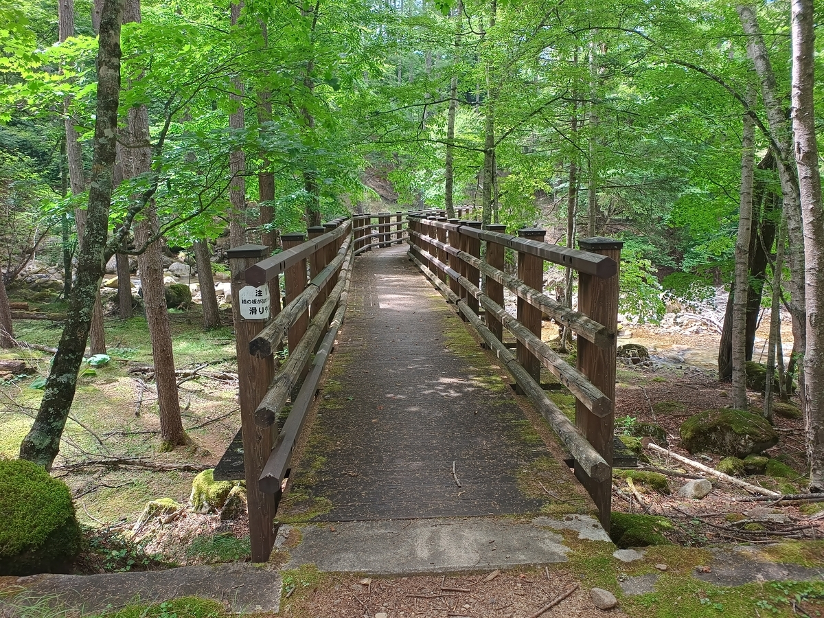 十文字小屋からは一気に標高を下げて、下界に戻ってきた。立派な橋を渡るとすぐに駐車場でした。6時間ほどの行程でした。