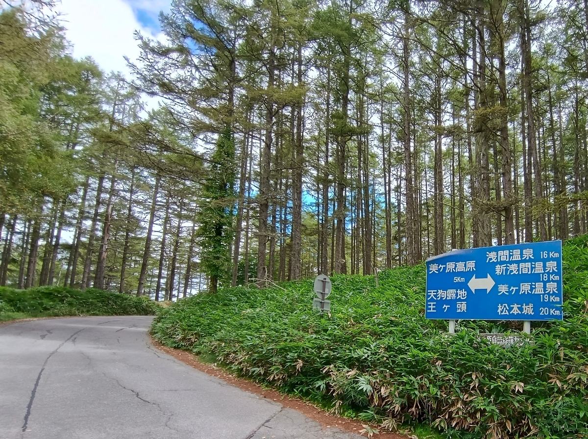 すぐに美ヶ原高原へ向けた林道線に入りまして、そこからはつづら折れの上り坂。距離15キロほどとかなり長い上り坂となります。