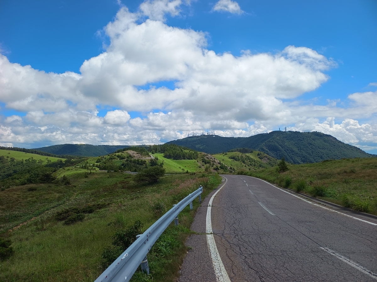 と思いましたが、案内板からしばらく登ると視界が開けて、一気に高原に出ました。平坦路になり、景色もう最高で最高に最高な道!