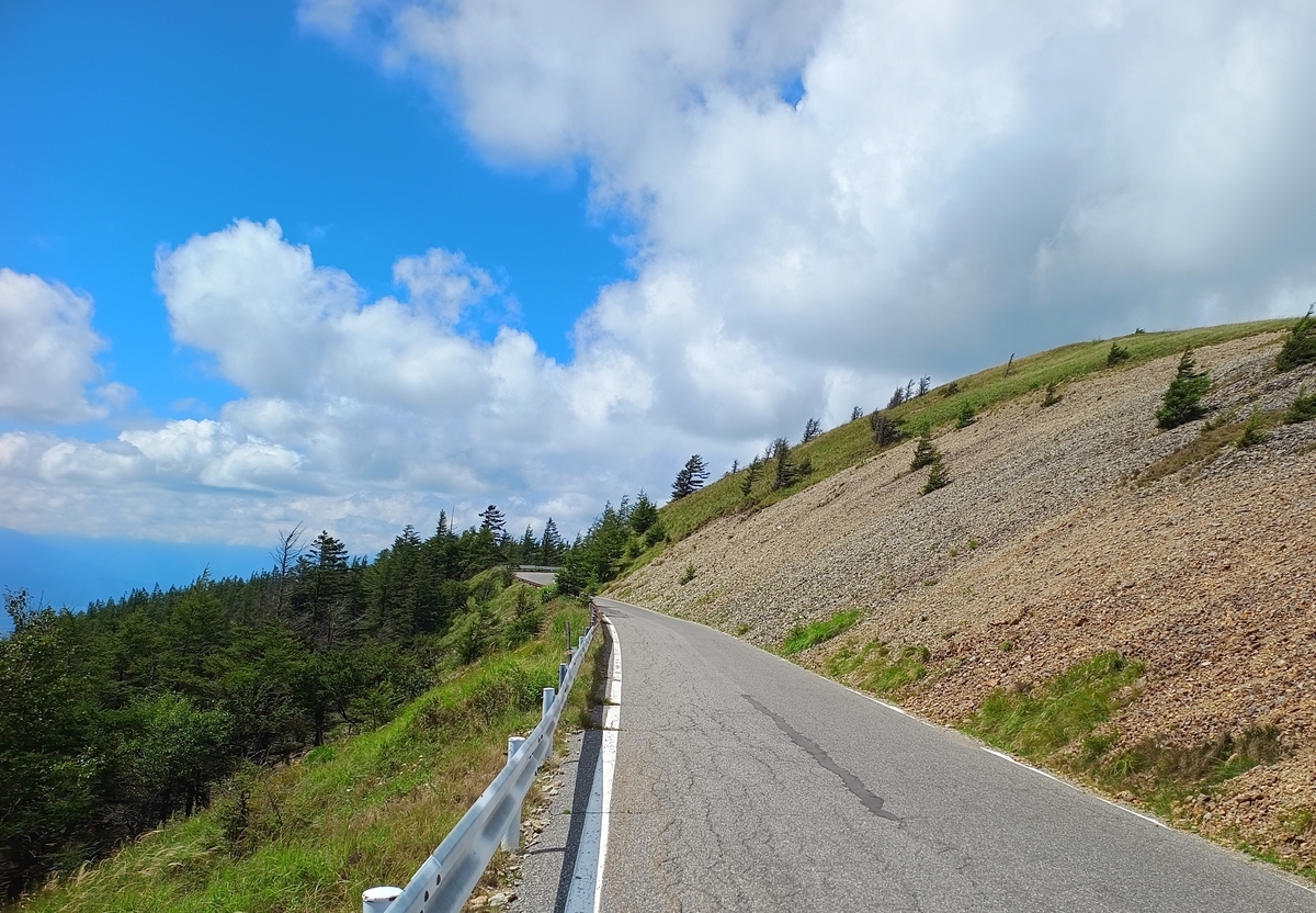 思ったより道幅は広く、綺麗でした。通行する車もまばらなので、道路の右側行ったり左側行ったりしながら登ります。